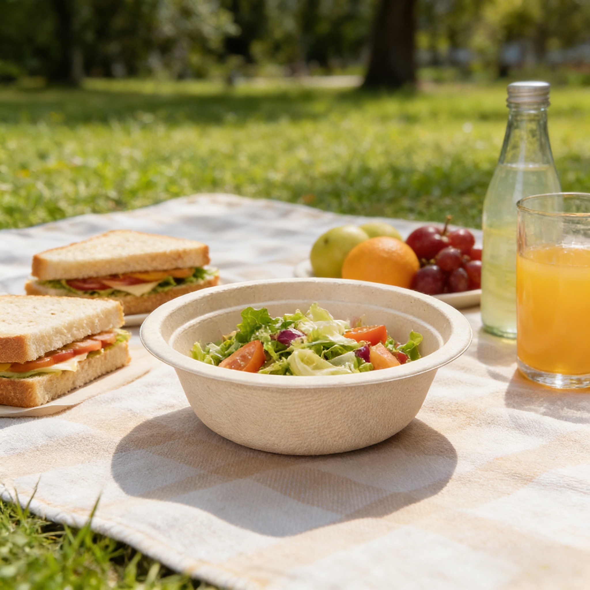 | Material | 100% natural sugarcane bagasse · Renewable, biodegradable, compostable |